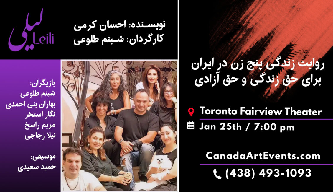 پس از سه اجرای موفق در شهرهای مختلف آمریکا، نمایش تحسینشده «لیلی» در ابتدای سال ۲۰۲۶ راهی کانادا میشود. این اثر به نویسندگی احسان کرمی، کارگردانی شبنم طلوعی و تهیهکنندگی کتی امیری یونسی در سه شهر ونکوور، تورنتو و مونترال میزبان تماشاگران خواهد بود. «لیلی» روایت پنج زن است؛ در ایران. «لیلی» قصهی اشکها و لبخندها و تلخ و شیرین زندگی زنان ایرانیست؛ که با هیچ زخمی از پا نمیافتند، و حتی در اوج رنج، زندگی را انتخاب میکنند. این نمایش با هنرمندی بازیگران برجستهای چون شبنم طلوعی، بهاران بنیاحمدی، نگار استخر، مریم راسخ و نیلا زجاجی روی صحنه میرود. موسیقی این نمایش نیز ساخته حمید سعیدی ـ برنده جایزه گرمی ـ است.